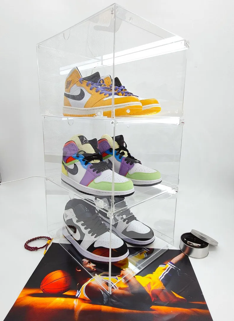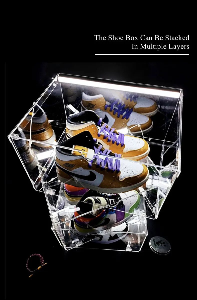 2021 Новинка HD Led обувные коробки прозрачного пластика 100% акриловые кроссовки Органайзер коробка для хранения обуви спортивная обувь демонстрационная коробка Штабелируемый