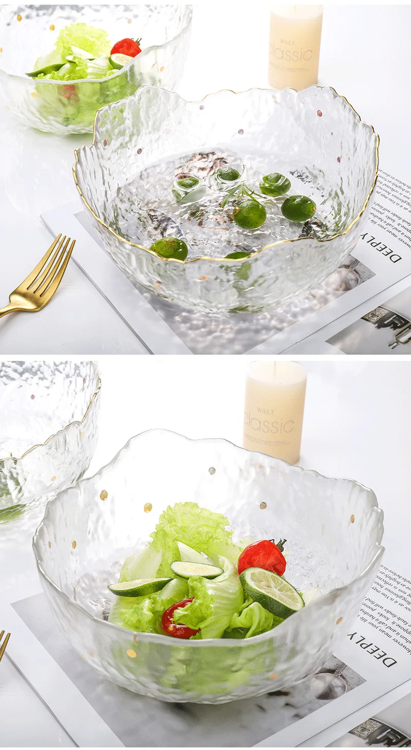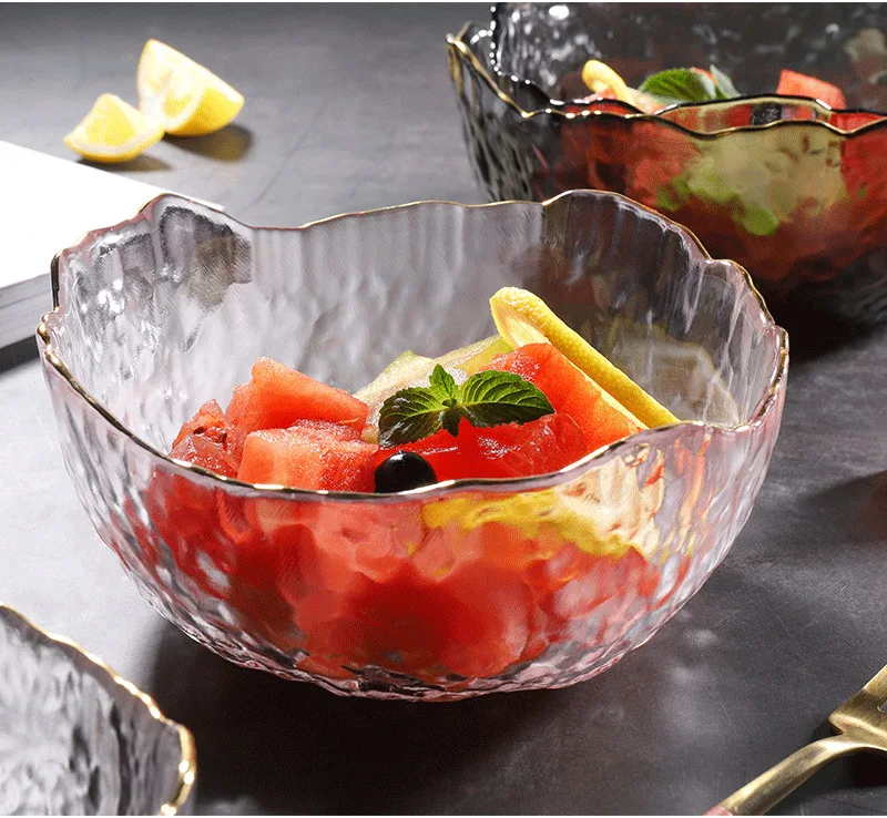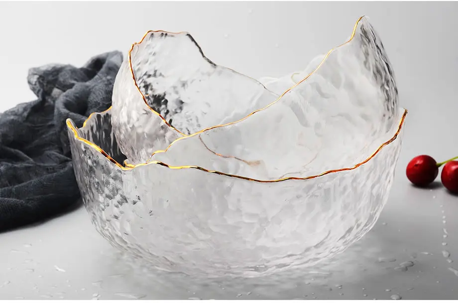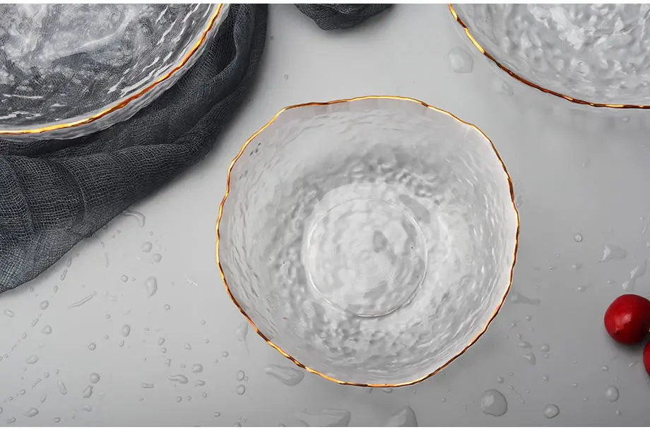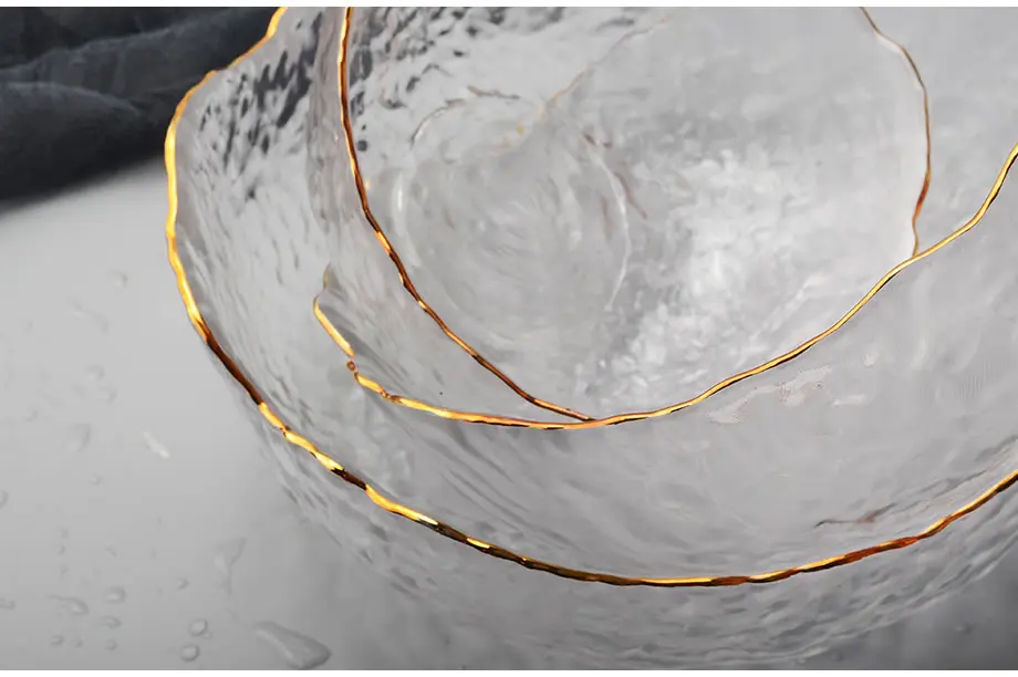 Стеклянная Чаша нерегулярные золотые инкрустационные края салат фрукты рис сервировочные чаши контейнер для хранения еды Ланч бенто коробка украшение посуда
