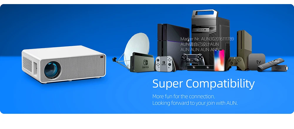 AUN Full HD проектор AKEY7 Max Native 1920x1080 Разрешение 7500 люмен 3D домашний кинотеатр совместим с ТВ-палкой ноутбука 4K видео