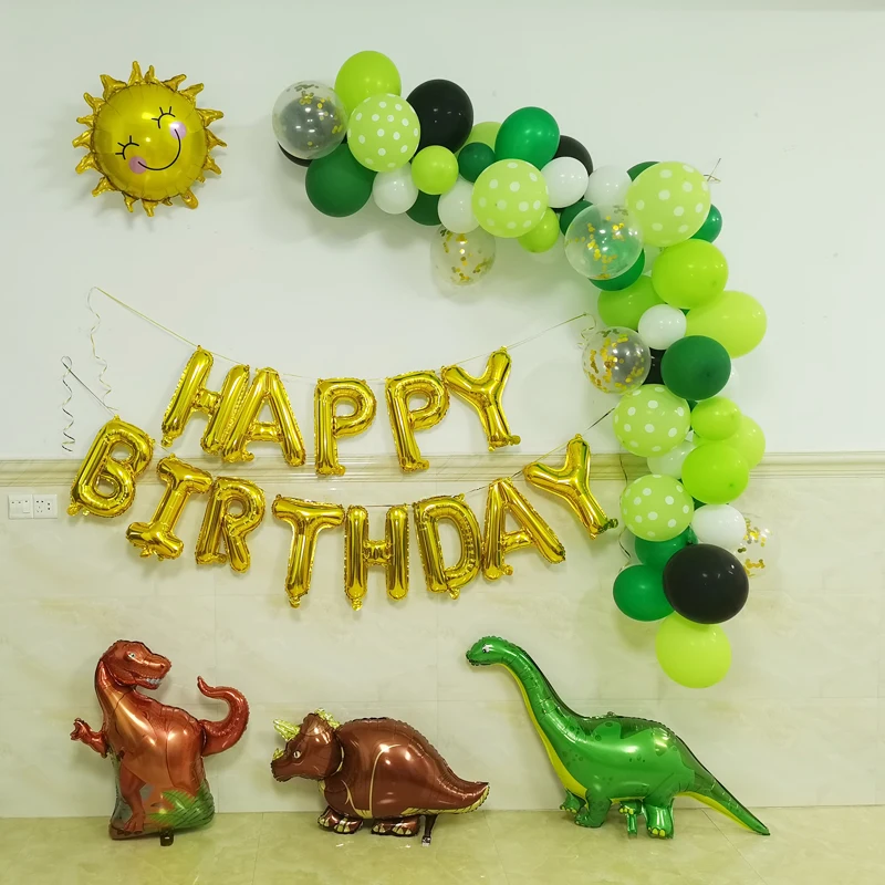 66 шт./компл. украшения для дня рождения динозавра детский зеленый шар гирлянда динозавр Вечеринка тема мальчик предметы для украшения дня рождения