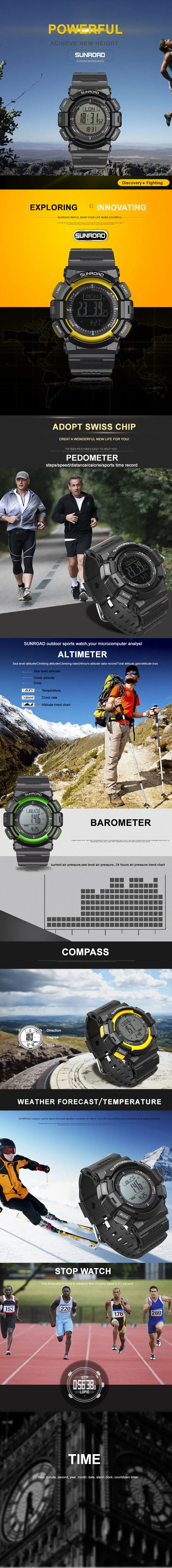 SUNROAD цифровые спортивные часы для улицы мужские часы с компасом барометр альтиметр водонепроницаемые температуры Секундомер Мужские часы