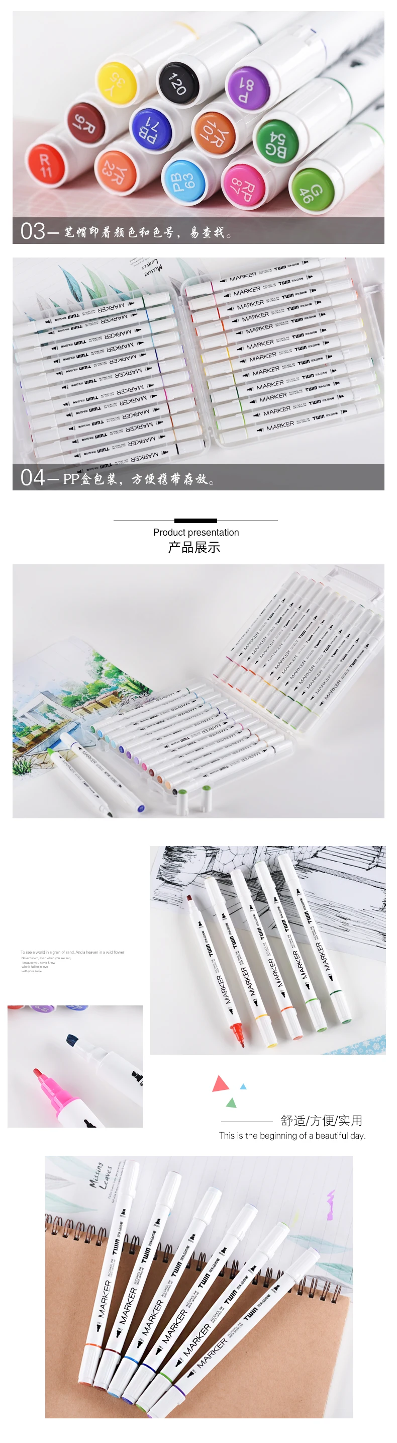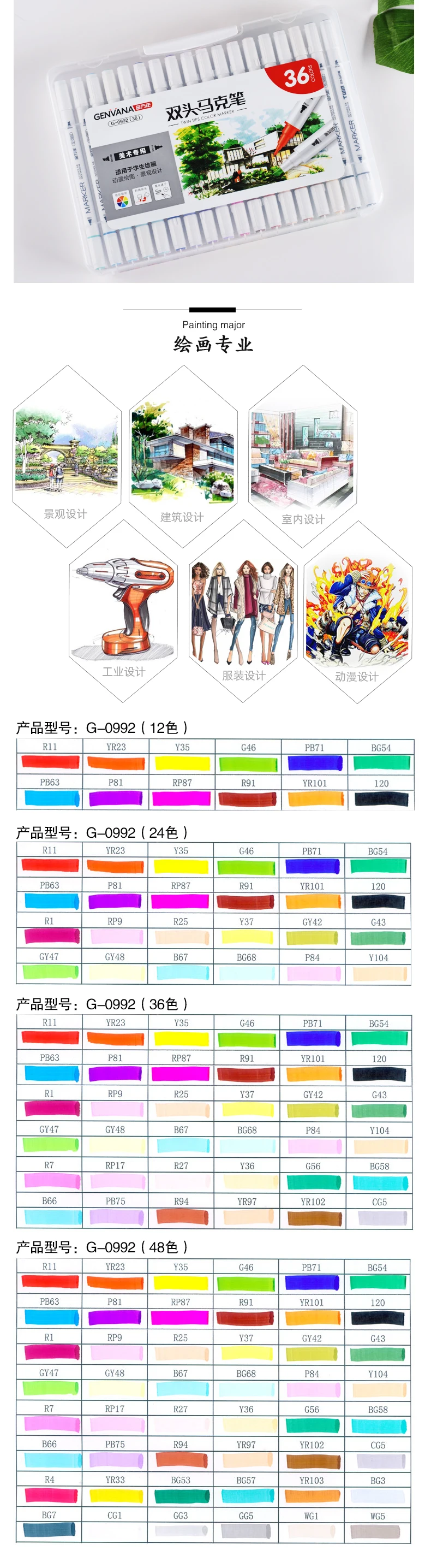 Genvana 12 / 24 / 36 / 48 цвет удобную коробку маленький стержень с двойным концом маркер 0992 арт-дизайн цветной маркировки маркерных ручек