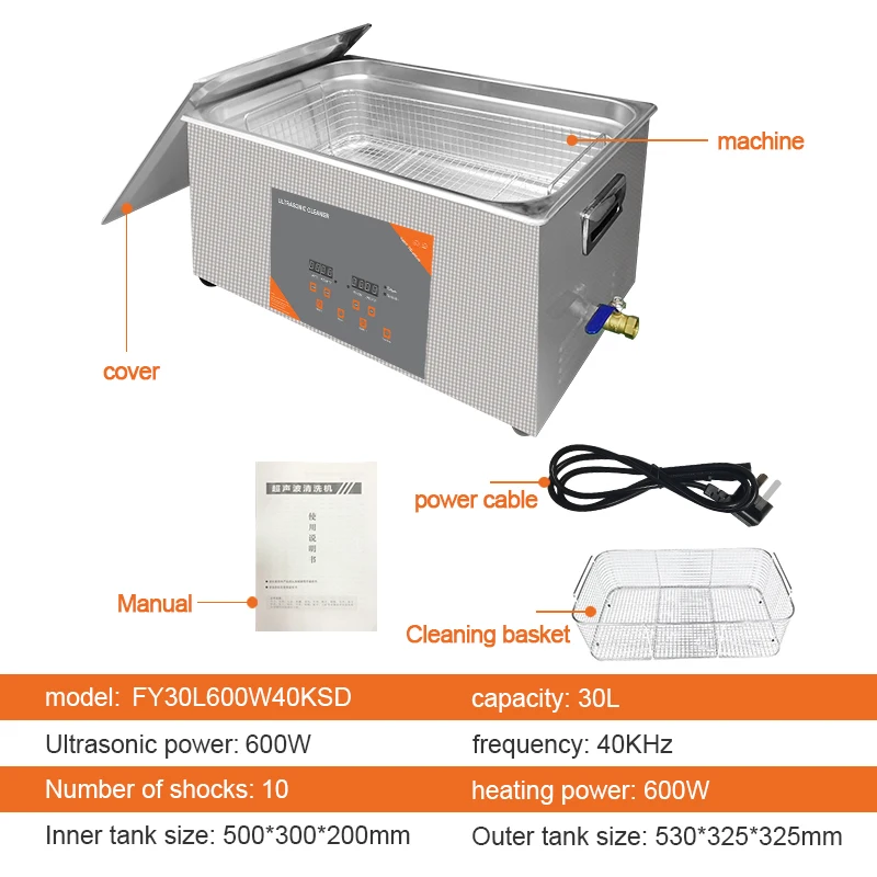 Встроенный мощный преобразователь может усилить ультразвуковую мощность и сделать превосходный результат очистки