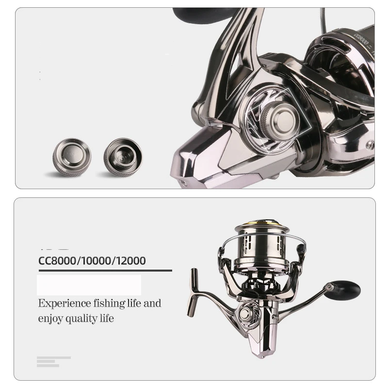 Особенности изделия: металлический корпус. Резная проволочная чашка, серебро CC8000/10000/12000, Ввинчиваемый металлический коромысло сменный левый и правый, Метательное кольцо из нержавеющей стали, основной вал из нержавеющей стали, подшипник из нержавеющей стали