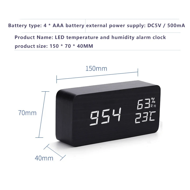 Светодиодный Будильник, деревянный стол для часов, голосовое управление, USB/AAA питание, цифровые настольные часы, домашний декор