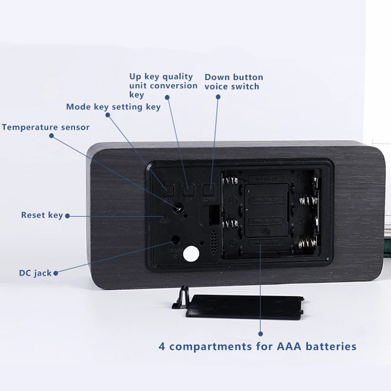 1. 【4 режима отображения】 3 различных будильника. А и В может отображать время, дату и температуру, а также C может отображать влажность. Вы можете выбрать свой любимый стиль, затем Переключить режим отображения, который вы хотите.