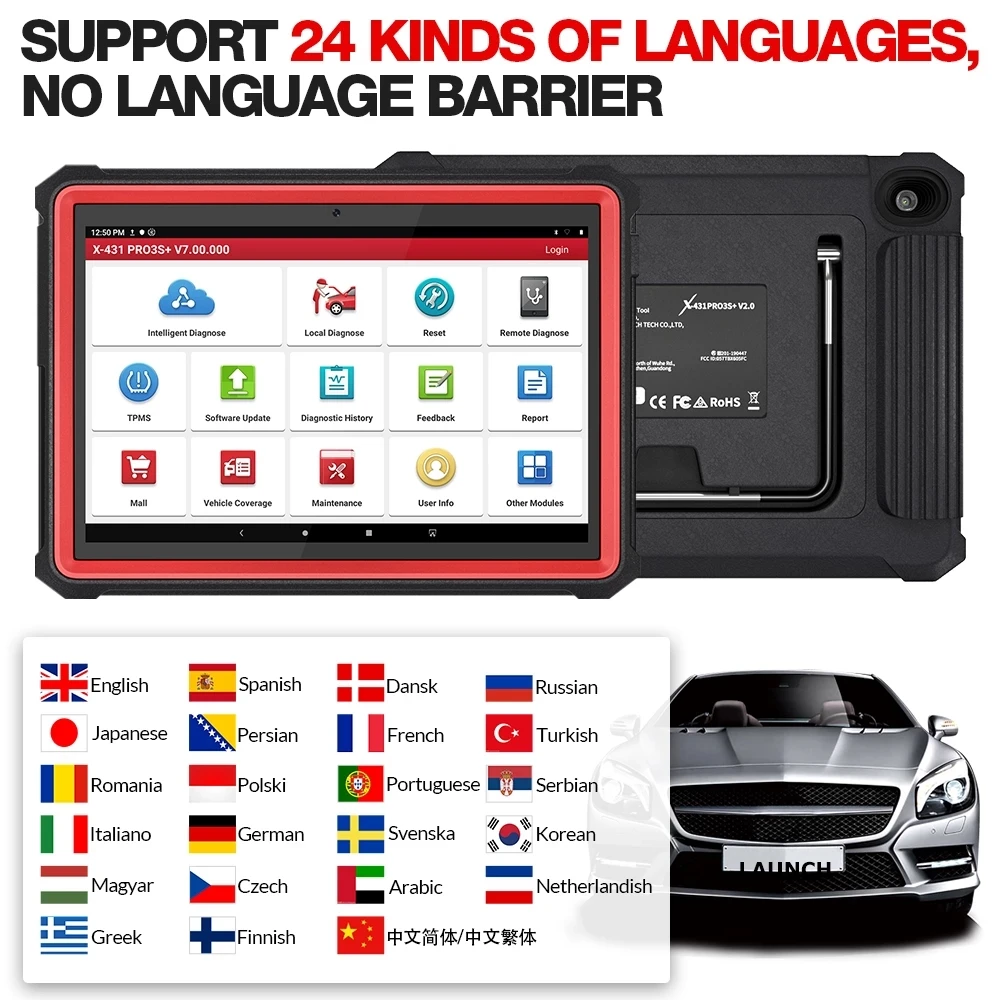 LAUNCH X431 PRO3S + HDIII поддерживает 24 языка: