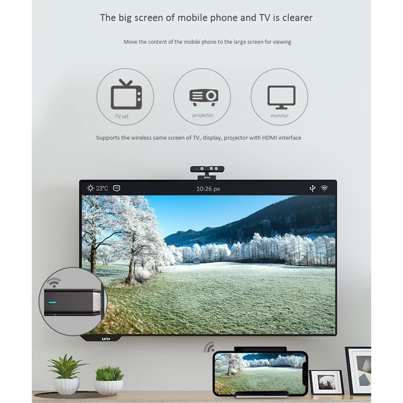 1. Совместимость с различными устройствами, Поддержка Android/ iOS; Широко применяется, поддержка HDMI устройств, таких как проектор/монитор/HDTV