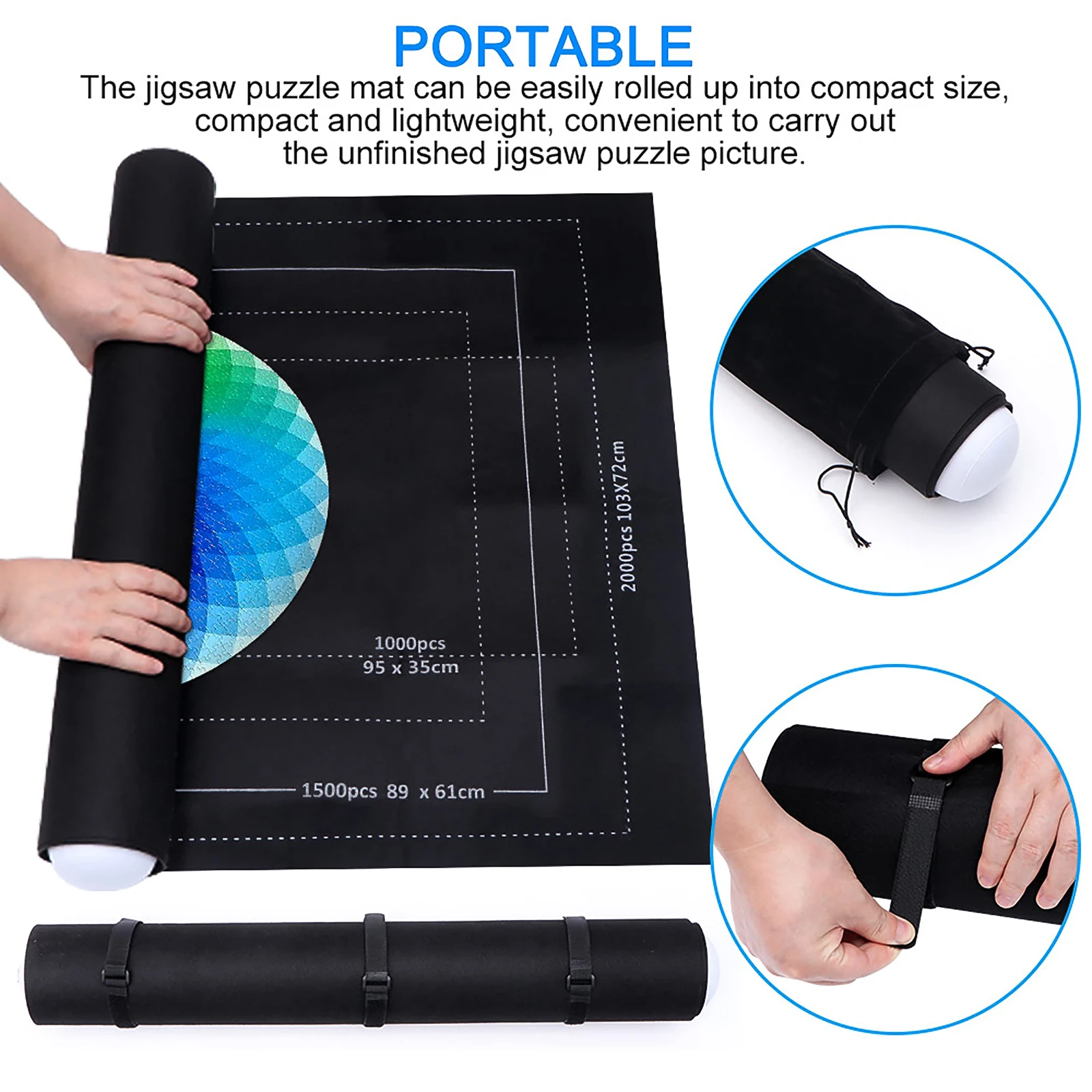 The jigsaw puzzle mat can be easily rolled up into compact size, compact and lightweight, convenient to carry out the unfinished jigsaw puzzle picture.