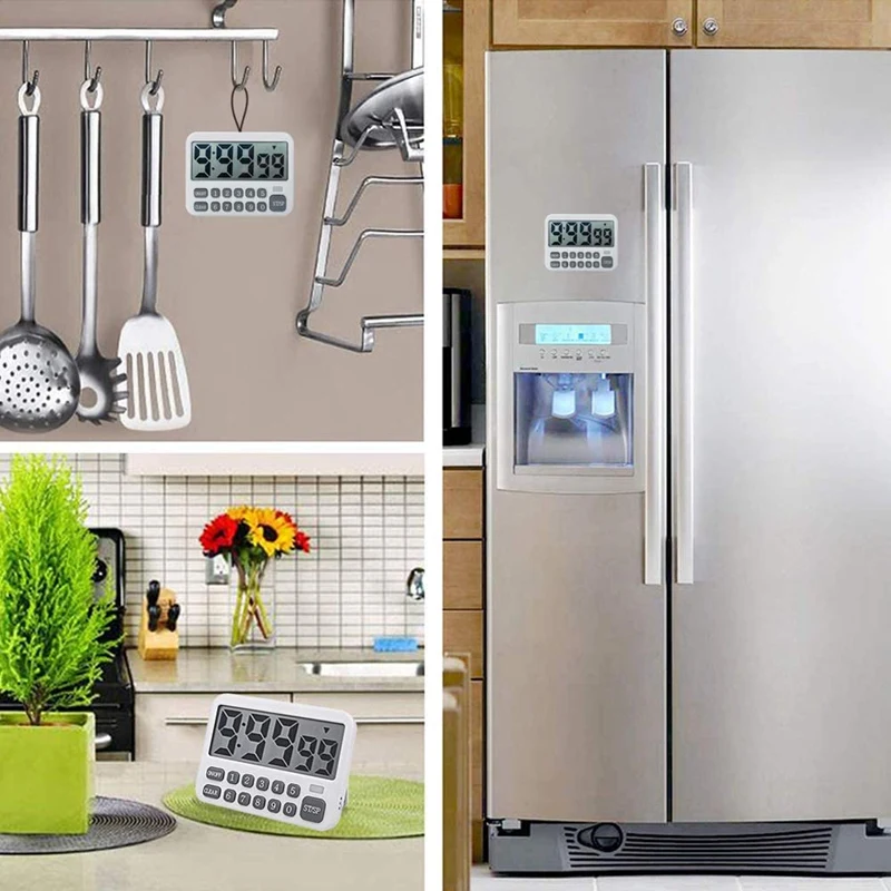 Подсчитывайте таймер вверх/вниз-этот цифровой кухонный таймер является последней обновленной версией таймера 3,0! Это может быть как таймер подсчета, так и таймер подсчета цикла, максимум до 9 часов, 99 минут и 99 секунд. Идеально подходит для приготовления пищи на кухне и выпечки, душа, упражнений, тренажерного зала, барбекю, парикмахерской, обучения в классе, детских занятий и встреч. Большой ЖК-дисплей с большими цифрами-Большой ЖК-экран для отображения цифр таймера.
