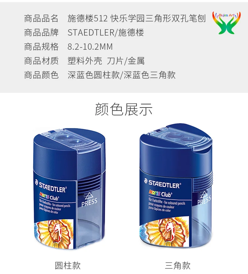 Точилка Staedtler 512 с двойным отверстием, цветной свинцовый карандаш, точилка для ручек для студентов, точилка цветной свинцовый карандаш