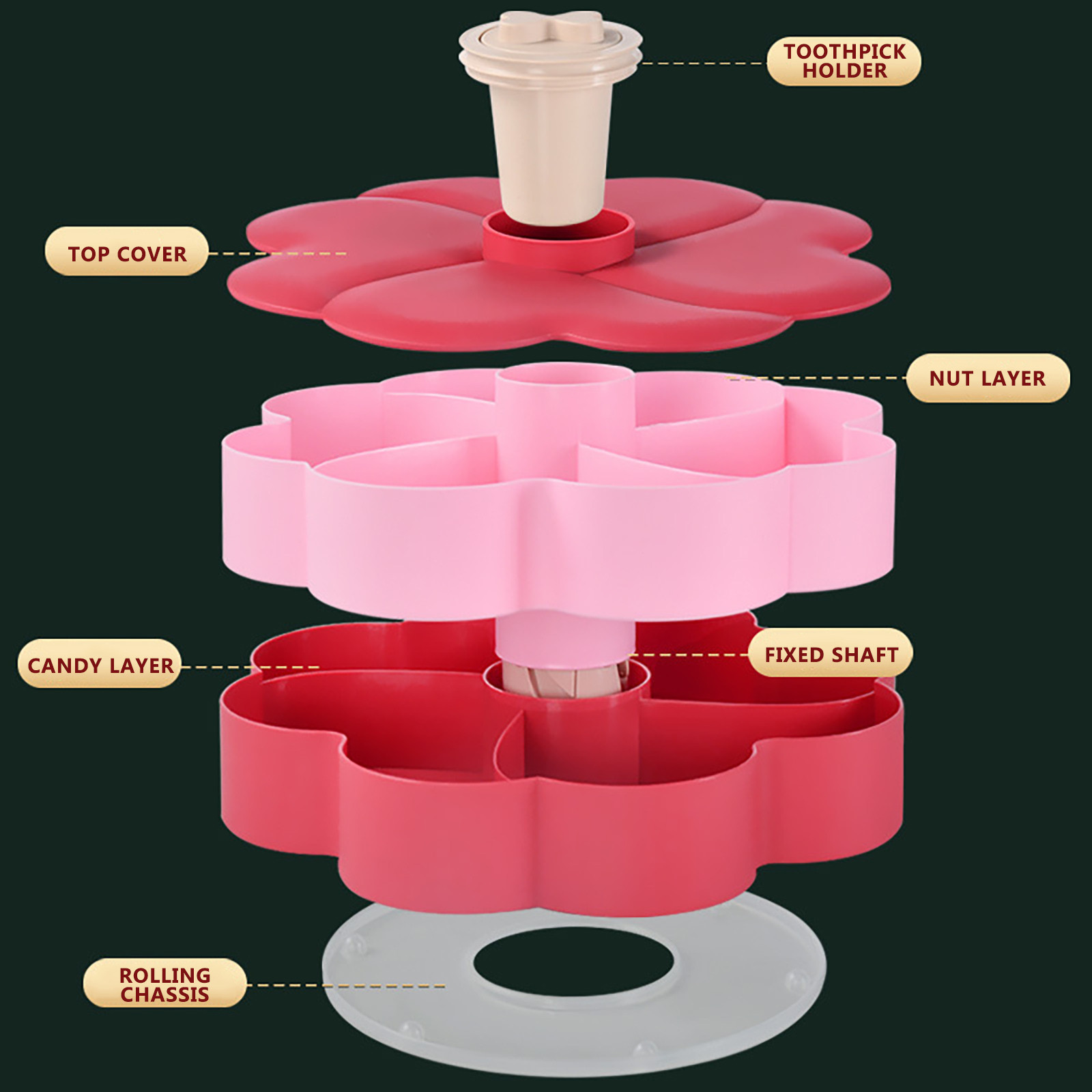 Лепестковая конструкция позволяет Лучшая классификация закусок и сухофруктов без смешивания вкусов