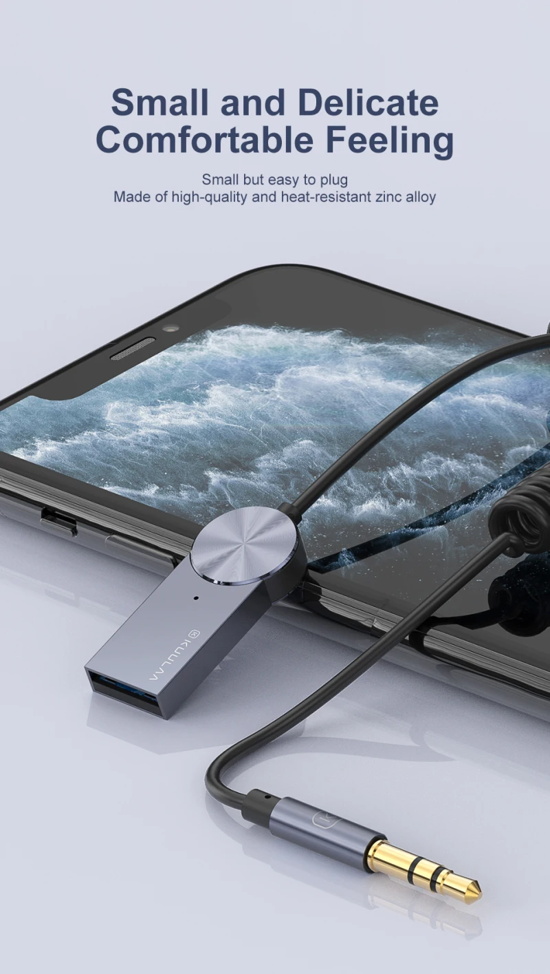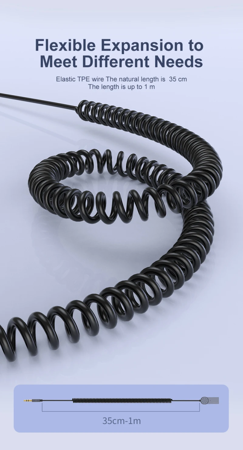 3. По сравнению с потребностью 3,5 мм адаптер для подключения к Bluetooth адаптер переменного тока, адаптер легко потерять. У этого есть 1,2 м весенней линейки, которые удобно хранить и использовать (пружина в нерастянутом состоянии в течение 45 см)