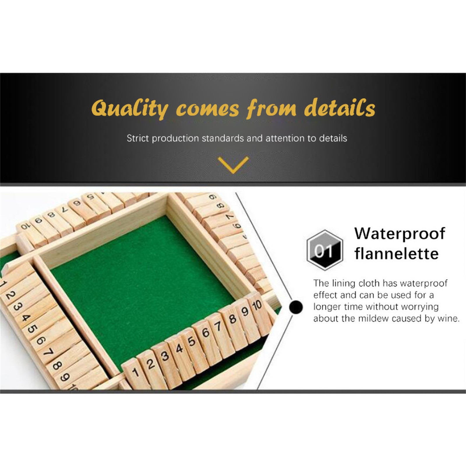 С 2 кубиками и 10 Пронумерованные деревянные плитки с каждой стороны