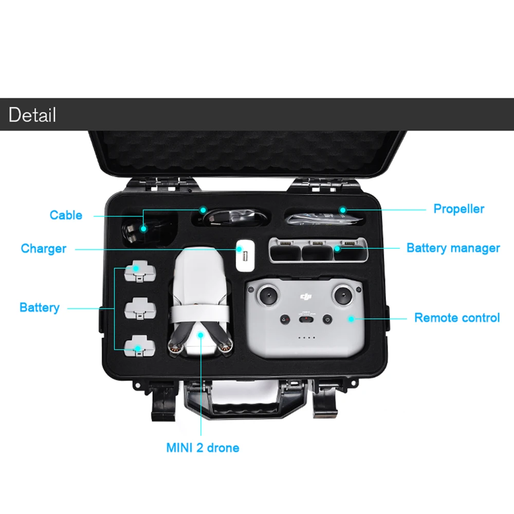 Сверхпрочный: Изготовлен из небьющегося, сверхпрочного пластика, водонепроницаемый чехол для переноски для DJI Mavic mini 2 был разработан, чтобы быть самым жестким чехол для переноски.