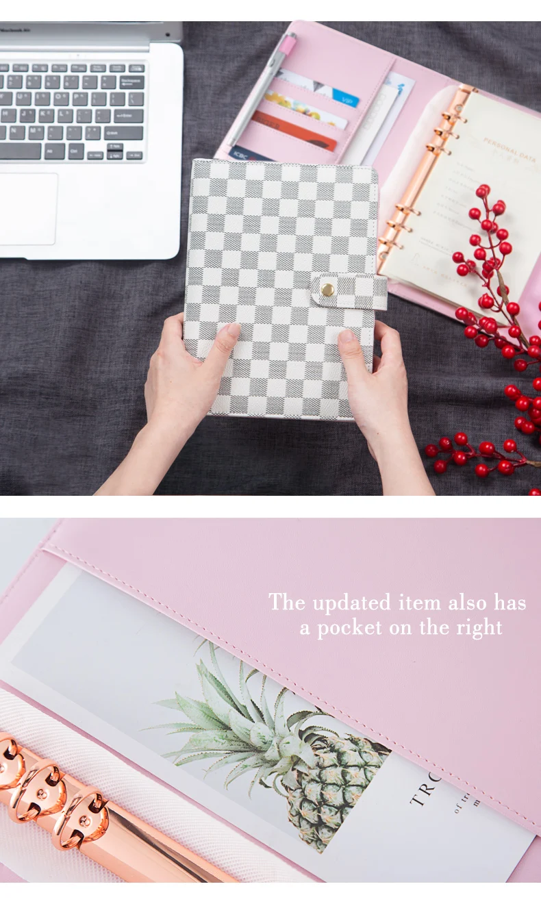 Клетчатый планировщик повестки дня Dupe, розовое золото и золото связующего кольца на ваш выбор
