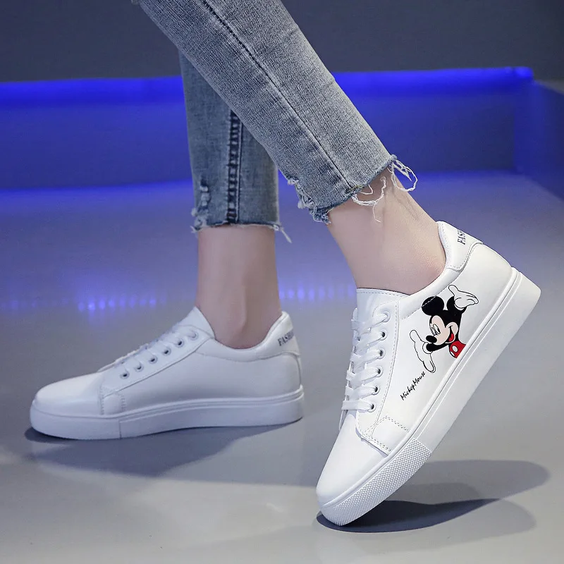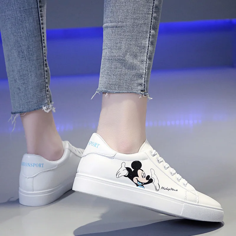 2021 Disney - petites chaussures de sport plates pour femmes, baskets blanches de couleur unie, dessin Anime Mickey mouse