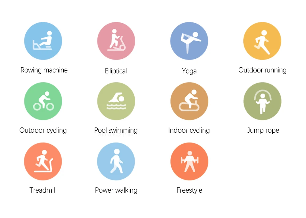 Бег на открытом воздухе, силовая ходьба, Велоспорт, бег в помещении, плавание в бассейне, фристайл,
