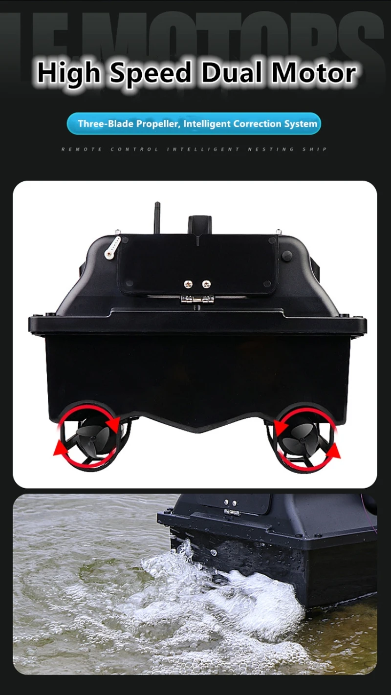 Сильная мощность: три пропеллера и двойной мотор обеспечивают сильную мощность лодки с дистанционным управлением.