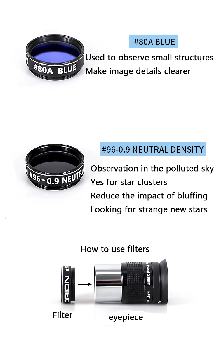 ORION 7,5 мм 20 мм окуляр PL 2x линза Барлоу Красный Желтый Синий 0,9 нейтральная плотность редуктор фильтр Набор для астрономического телескопа