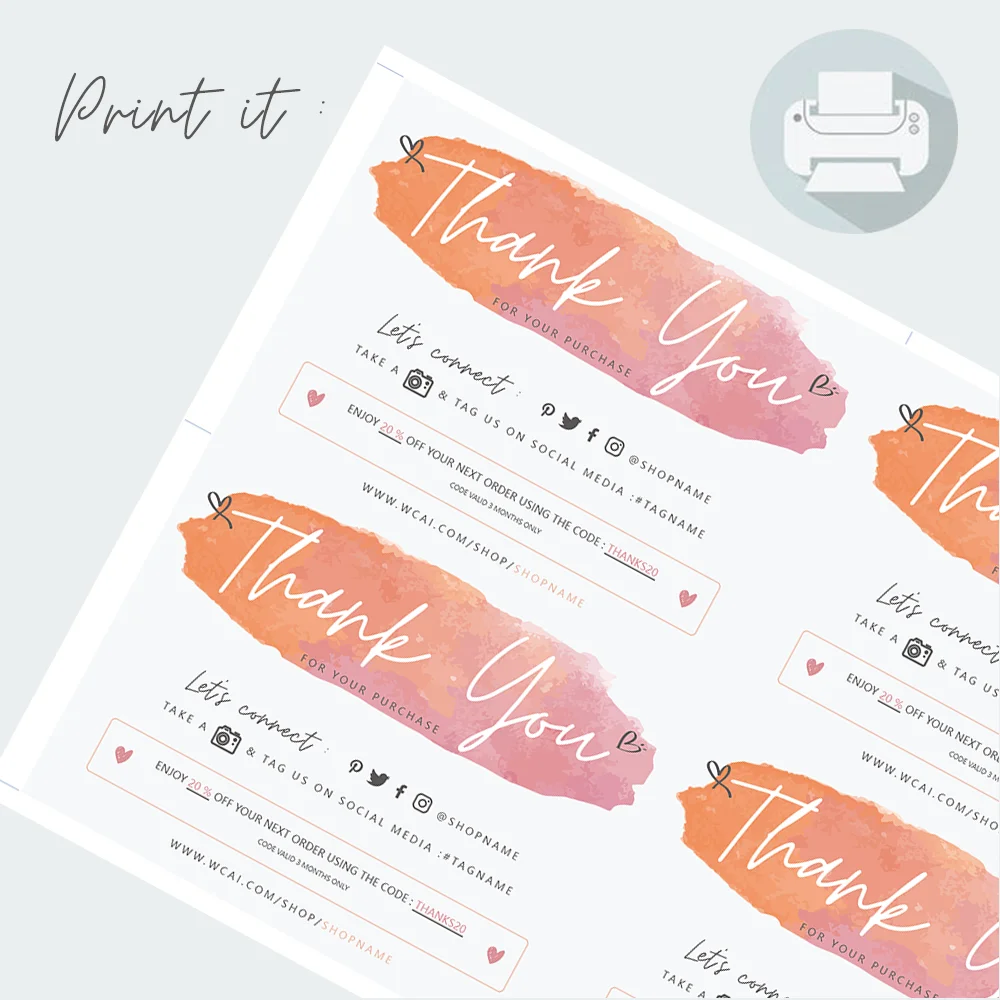 Социальные медиа Editable спасибо за покупку карты, оранжевый цвет заказ Примечание маркетинг для малого бизнеса с купоном 50 шт