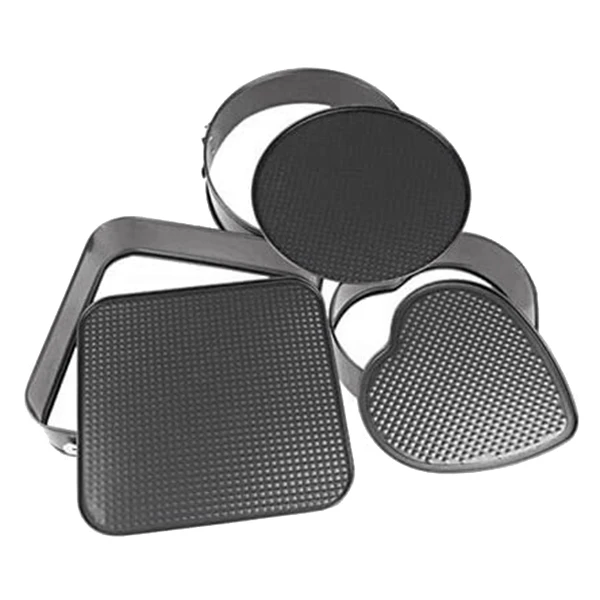 Размеры 3 форменных лотков для торта: 8,66 дюйма в форме сердца * 1, 9,45 дюйма круглой * 1, 10,24 дюйма квадратной * 1.
