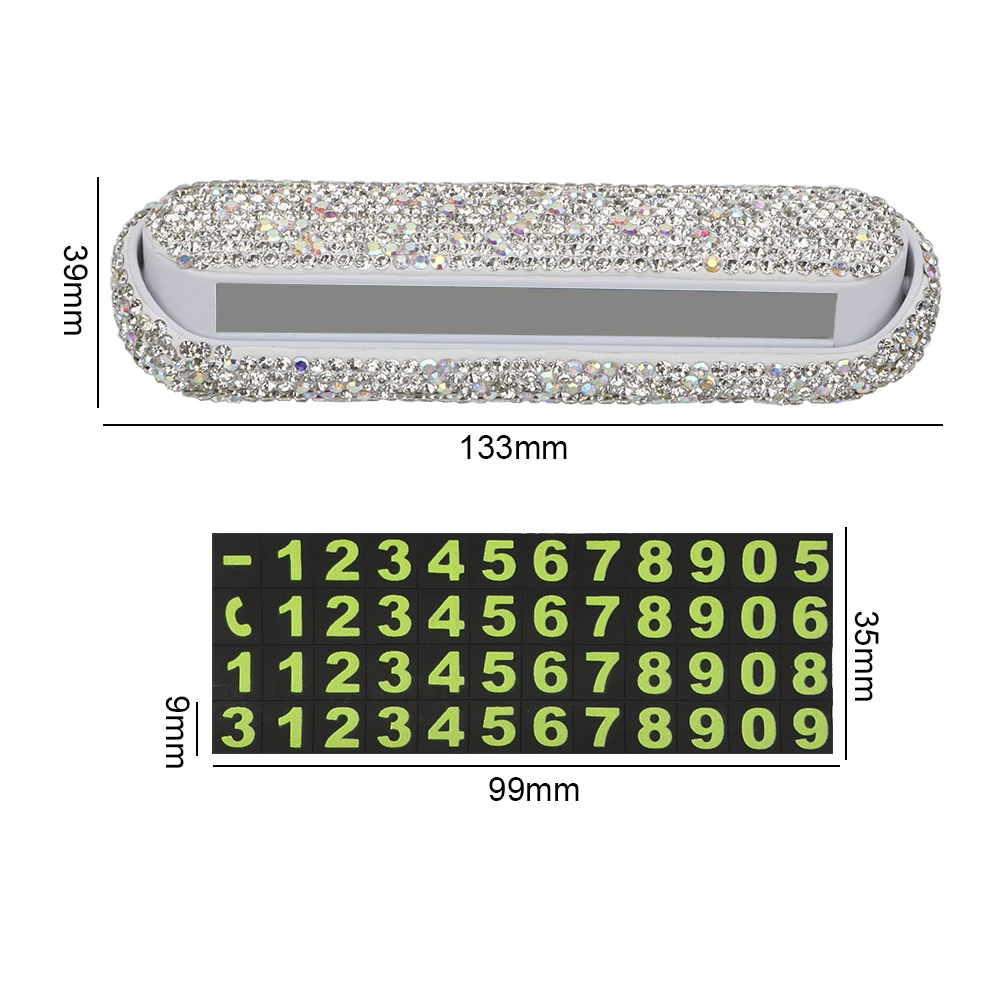 Особенности:В Использование экологически безопасных материалов ABS, структурная стабильность, Защита от солнца, высокая температура, прочный, не легко деформируется.Очень Нежный и замечательный, маленький корпус, не будет блокировать линию зрения; Гладкая форма тела и красивая дуга, и случайный матч с вашим автомобилем.Чистая Ручная инкрустация, кристалл не легко отвалиться, очень шикарный.Есть 4 группы (0-9) магнитных наклеек, вы можете свободно составить свой собственный мобильный телефон.