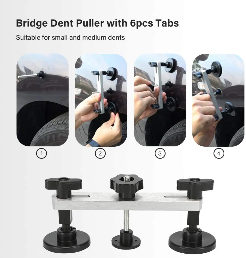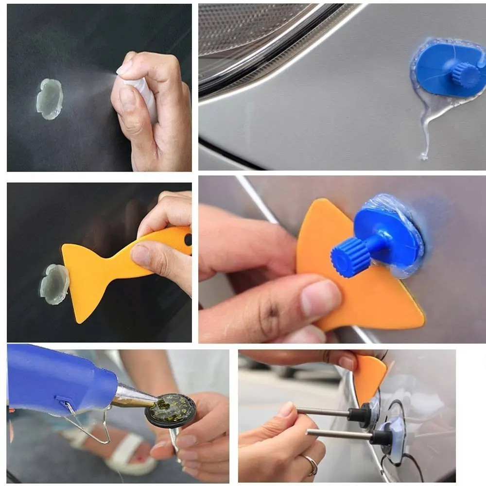 1. Работа за Стартер-прост в управлении, каждый может удалить вмятину самостоятельно. 2. Экологичное-выпечка-без лака ремонт вмятин, не повредит краску, быстро, экономия денег и экологичность. 3. Широко используется-подходит для вмятин всех видов плоских металлов, таких как поверхность автомобильной металлической пластины и металлической пластины стиральной машины.