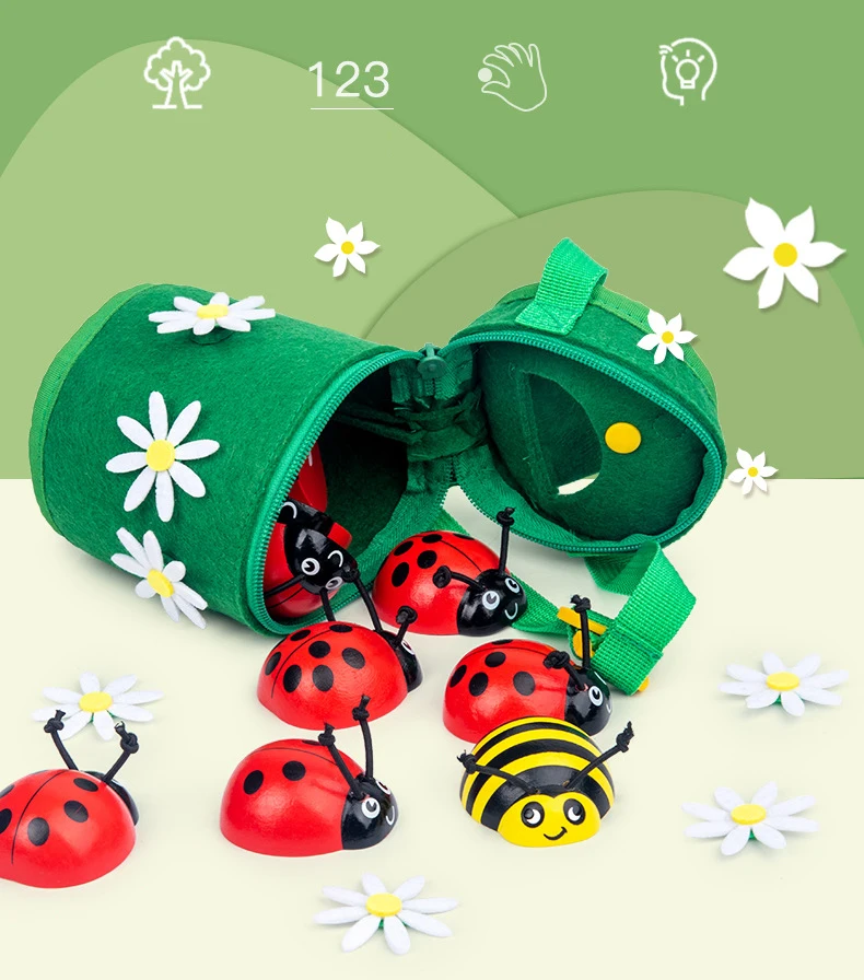 1. Изысканная сумка для хранения, удобная для детей, когда вы выходите на прогулку. 2. Выбор твердой древесины для сборки, мульти-процесс, ручная полировка, гладкий дизайн, безопасный для детей, чтобы играть 3. Узнайте о насекомых, изучите цифры и изучите Основы математики в играх. 4. Он также может быть использован в качестве ремесел и украшения дома.