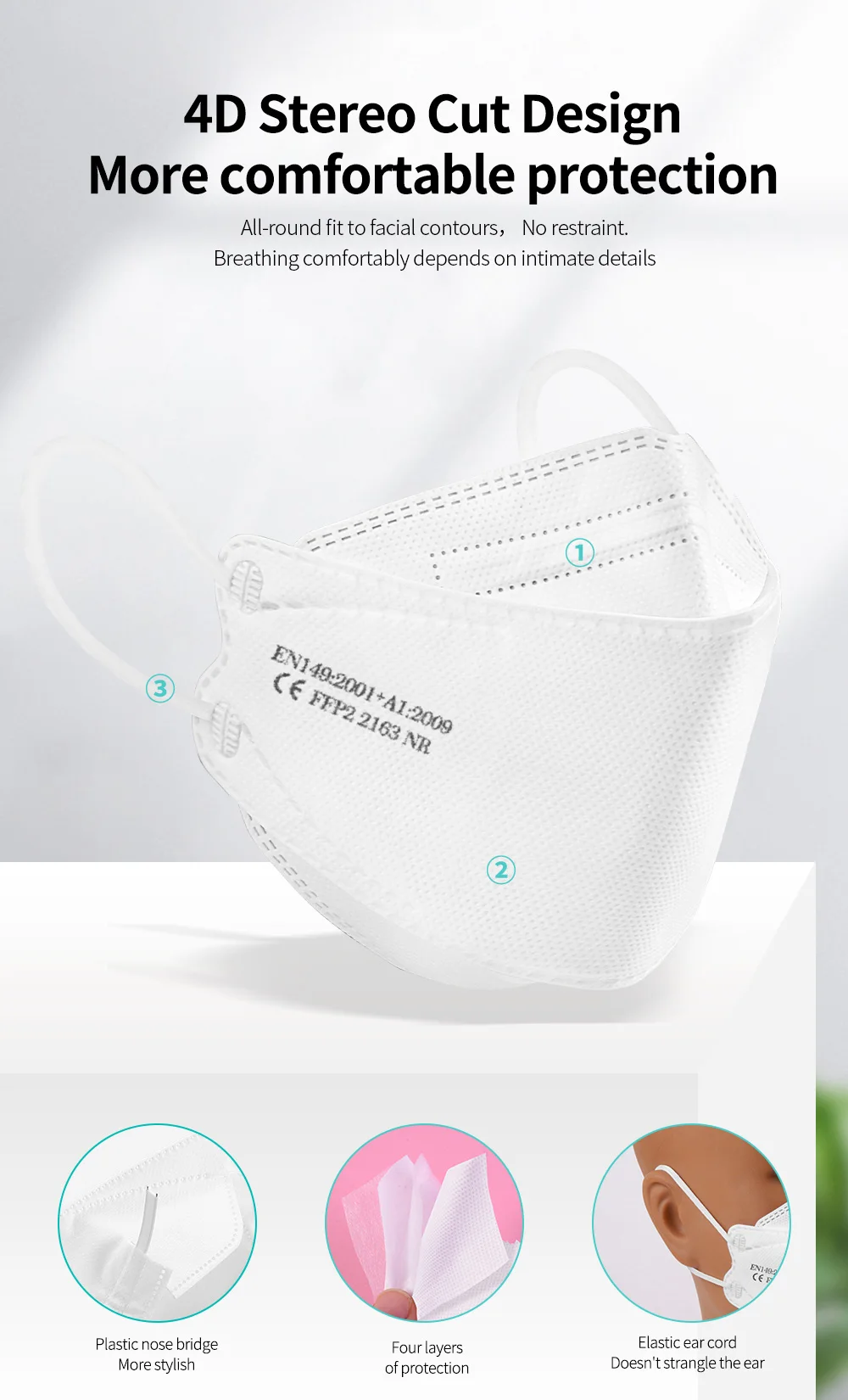 Эластичные ремешки и регулируемый зажим для носа для различных форм и размеров лица. Идеально подходит для ежедневного использования и активного отдыха.