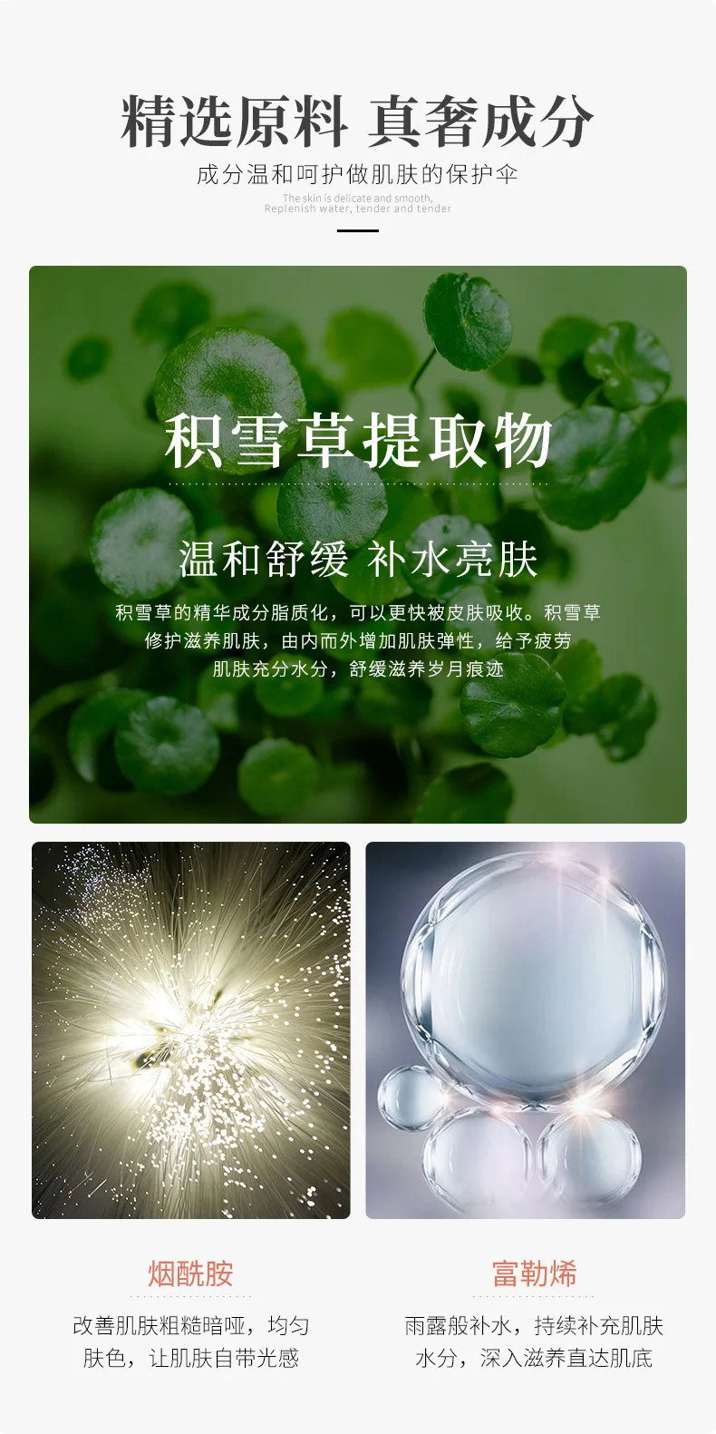 1. Этот продукт обладает хорошим антивозрастным эффектом. Содержит витамин Е, коллаген, эластин, который может помочь расслабить кожу, способствовать метаболизму клеток, поддерживать гладкость кожи и замедлять старение.
