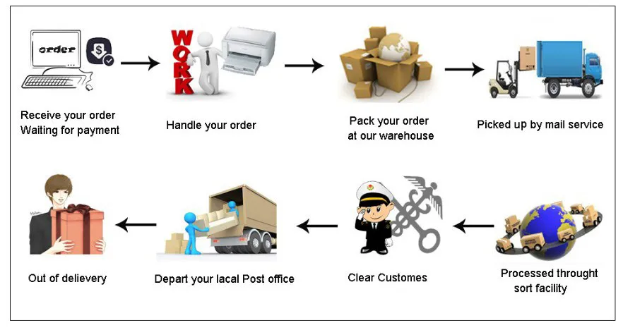 Как правило, ваш товар будет отправлен в течение 1-5 рабочих дней после подтверждения заказа и оплаты, и Логистическая информация будет обновлена в течение недели. Однако иногда посылка может задерживаться из-за некоторых факторов, таких как транспортировка, праздники и Удаленная область. В этом чехол, я надеюсь, вы можете взять больше терпения, чтобы ждать посылку, или свяжитесь с нами напрямую. Заранее спасибо за понимание.