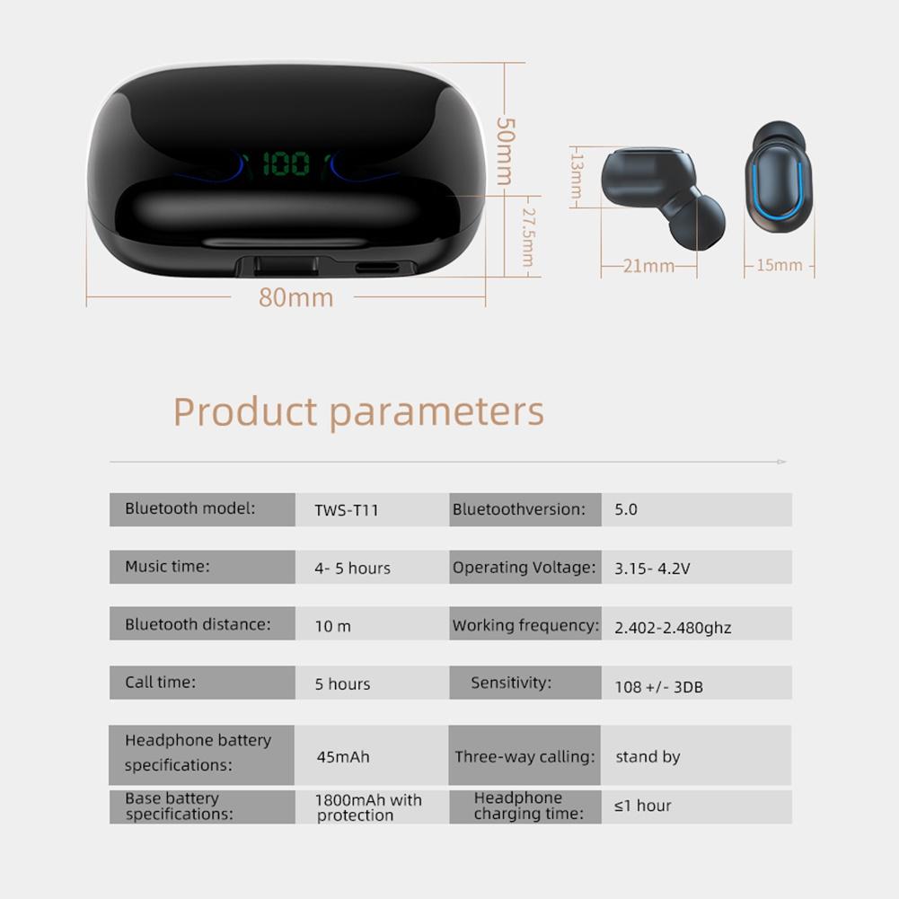 T11 TWS Bluetooth 5,0 IPX7 водонепроницаемый 9D стерео светодиодный экран беспроводные наушники