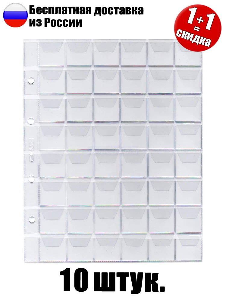 10 штук! Листы для монет на 48 ячеек, подходят для папок фомата "Оптима", размер ячейки 28 х 28 мм. Серия "Стандарт"