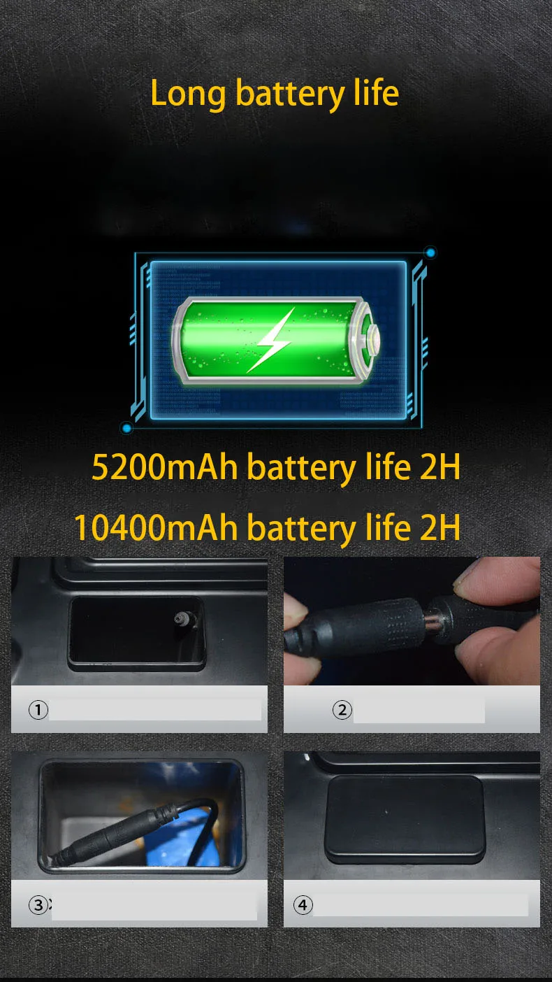 3 -6 часов длительный срок службы батареи: 5200 мАч Срок службы батареи 3-5 часов или 10400 мАч Срок службы батареи около 6-8 часов.