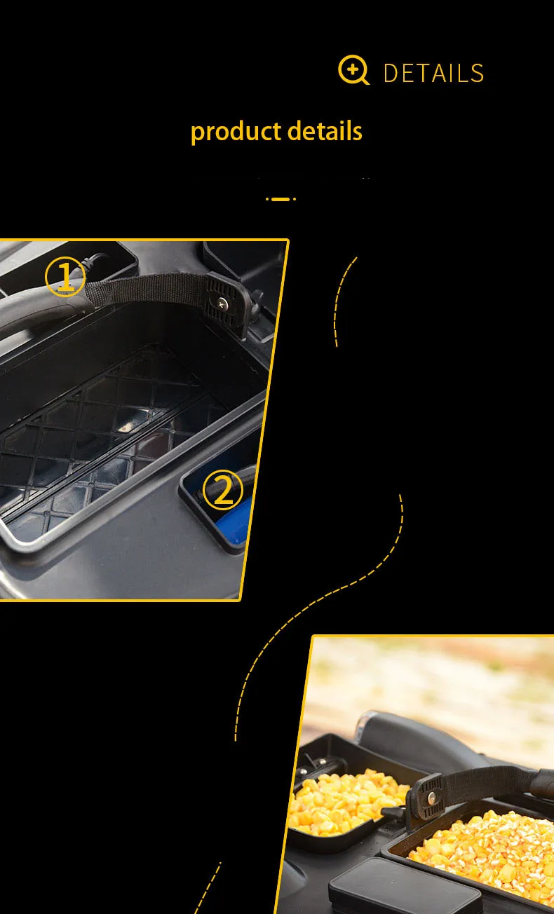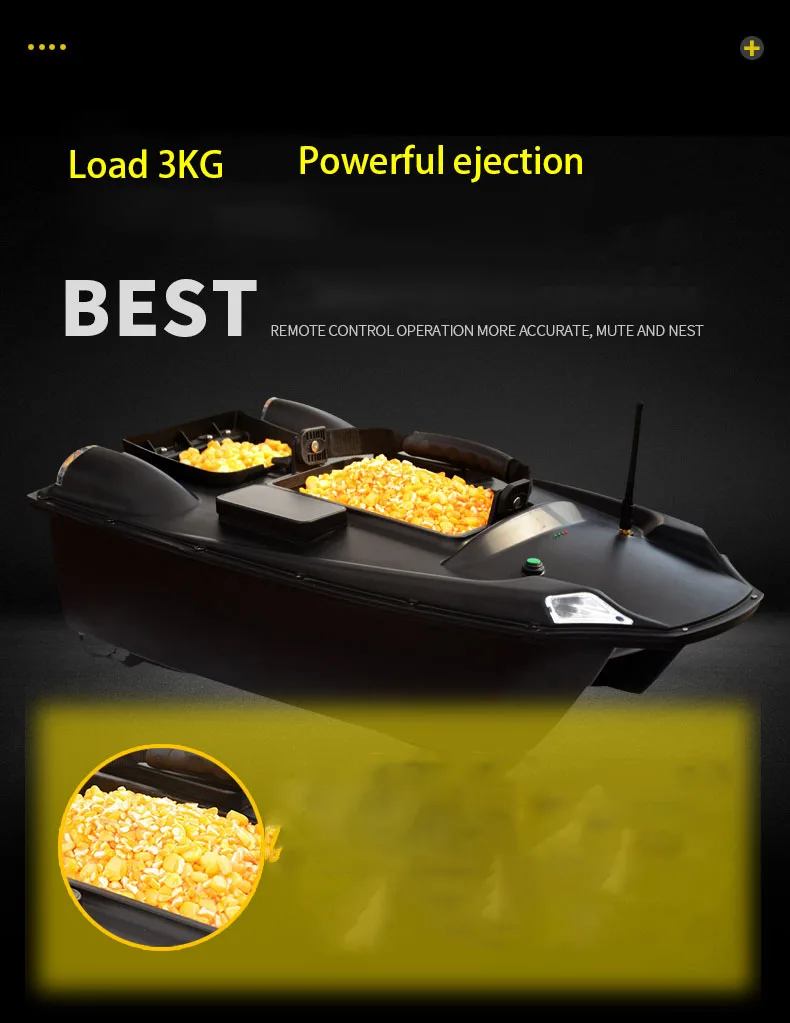 Три управляемых гнезда для хранения: 2 хоппера для загрузки различных наживок, и вы можете открыть их самостоятельно.