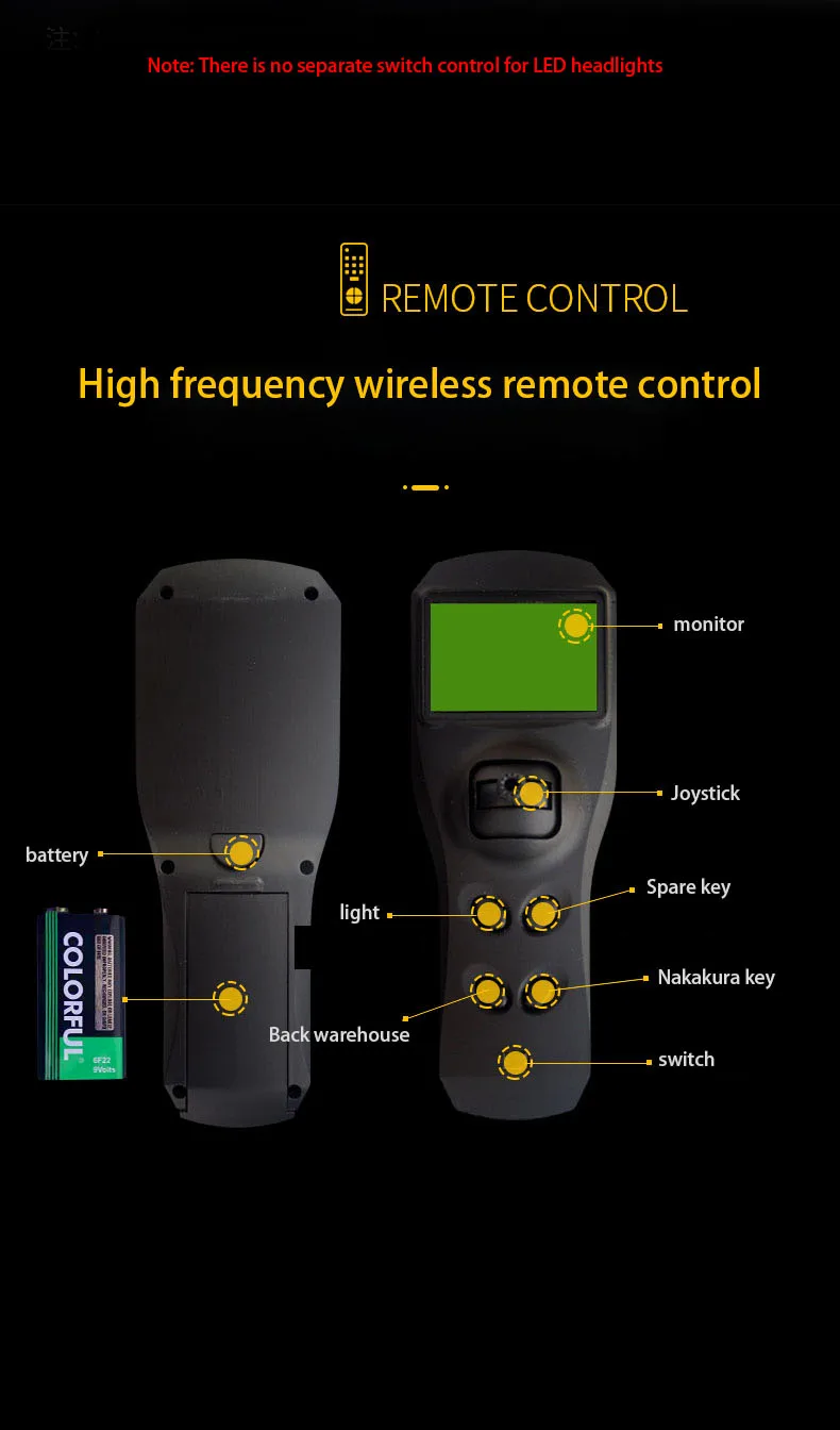 2,4G пульт дистанционного управления: 500 м Улучшенный анти-помех сигнал. Дистанция дистанционного управления позиционирования 500 метров.