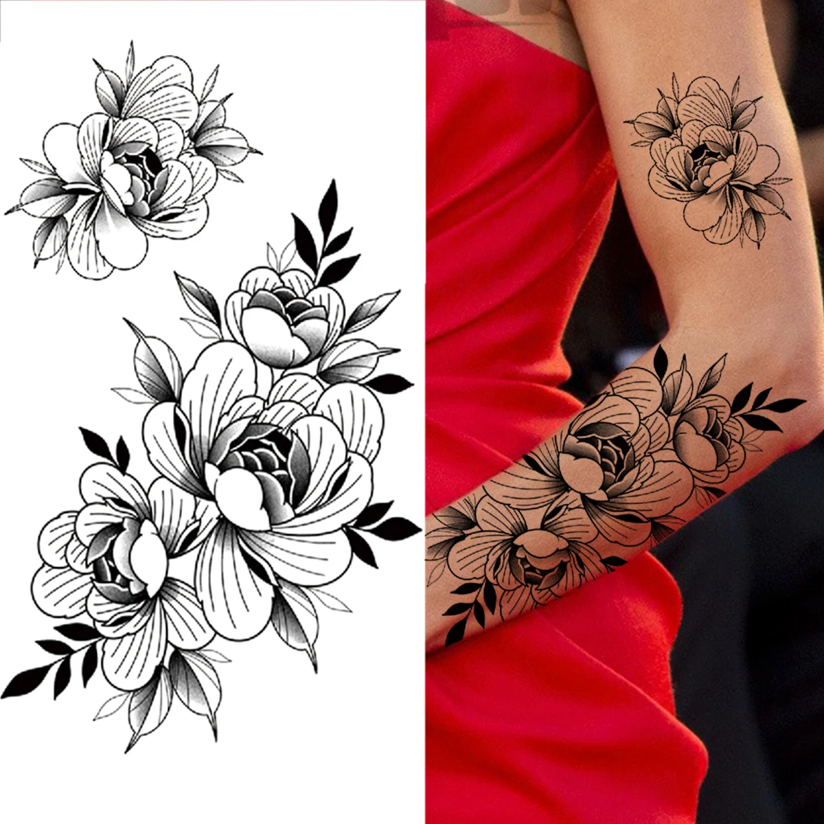 Временные татуировки индийского Будды для женщин, детей, черный пион, цветок, геометрические, горные, поддельные татуировки, наклейки на Хэллоуин, вечерние татуировки