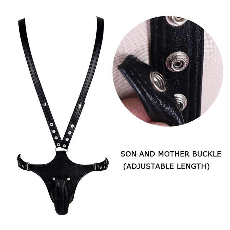 Горячие кожаные стринги с открытым шаговым швом Брюки Мужская клетка целомудрия для пениса Мошонка сумка, БДСМ тело Связывание жгут боди, эротический клубный костюм