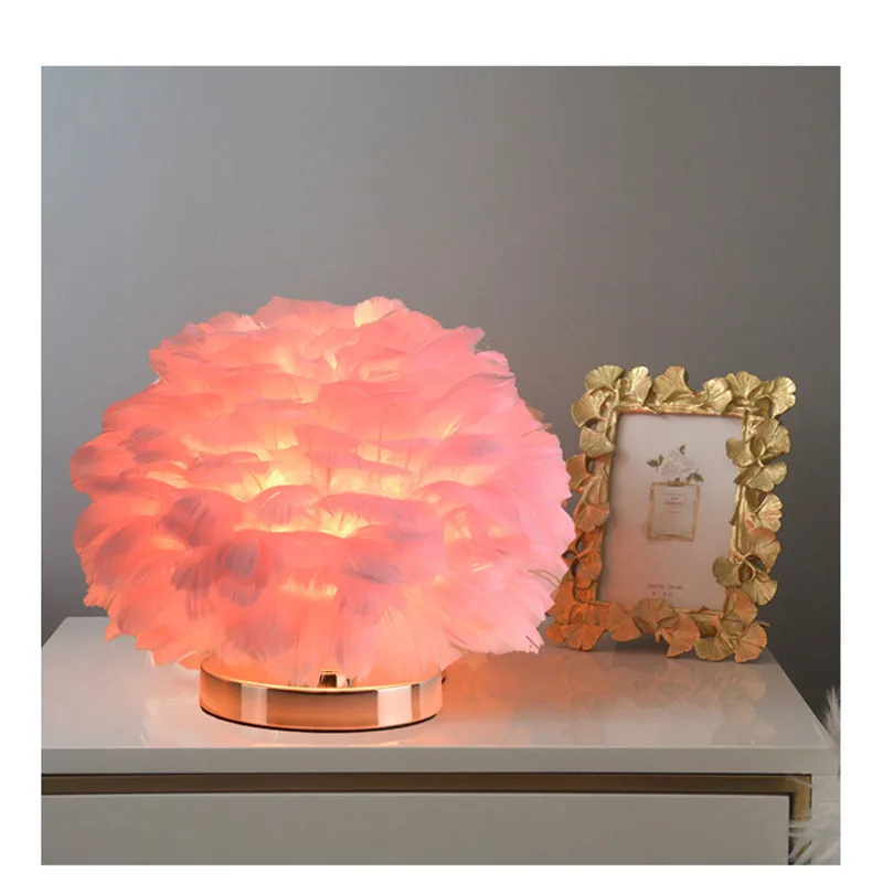 Feather Table Lamp Brightness Adjustable With Switch Creative Feather Lampshade Wedding Home Bedroom Decor LED Bedside Lamp