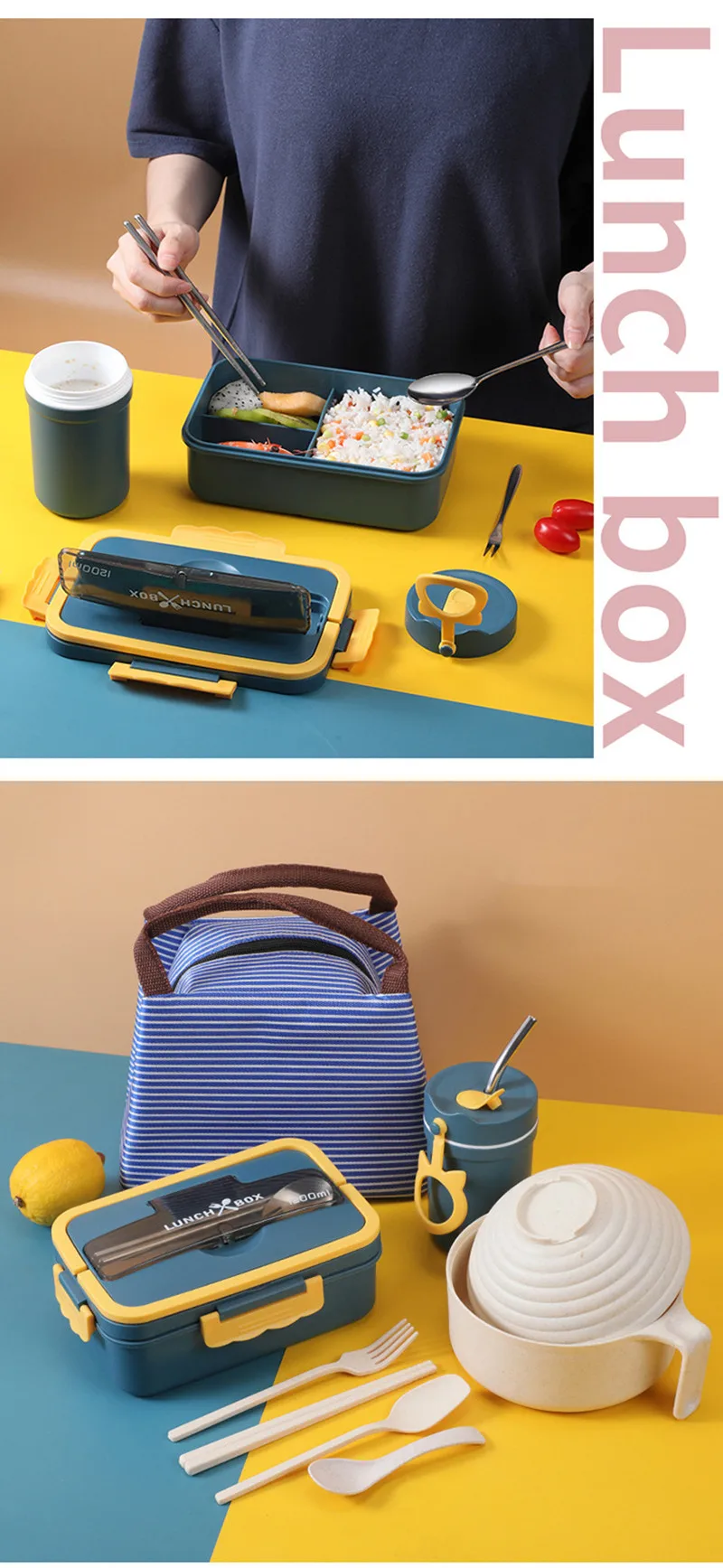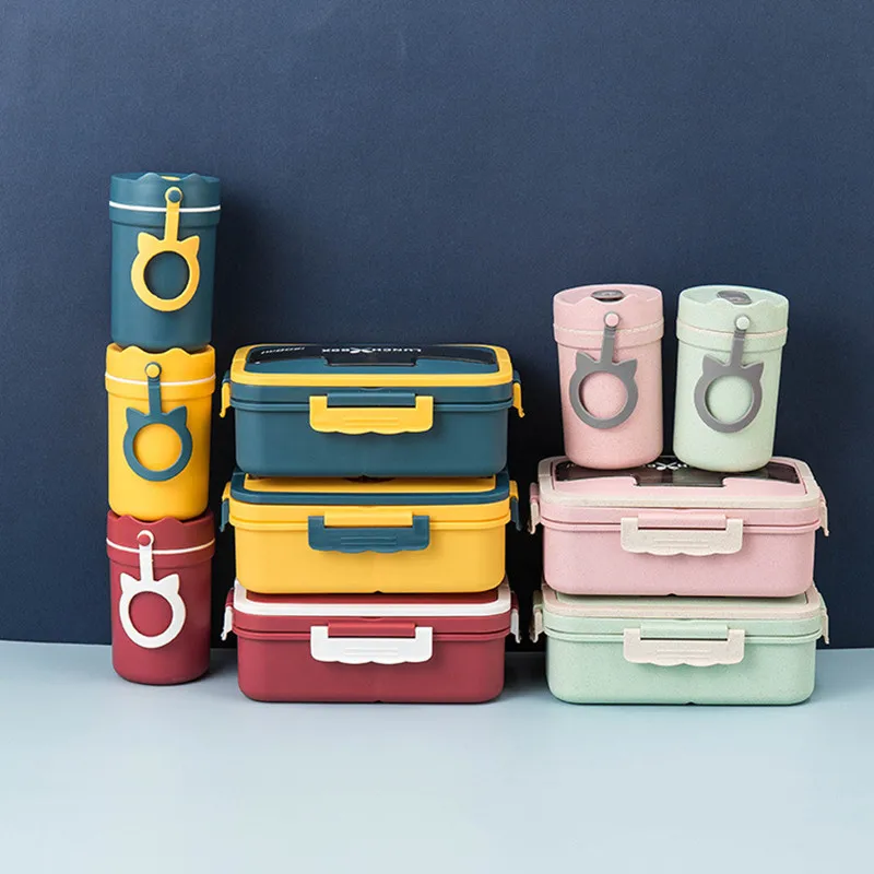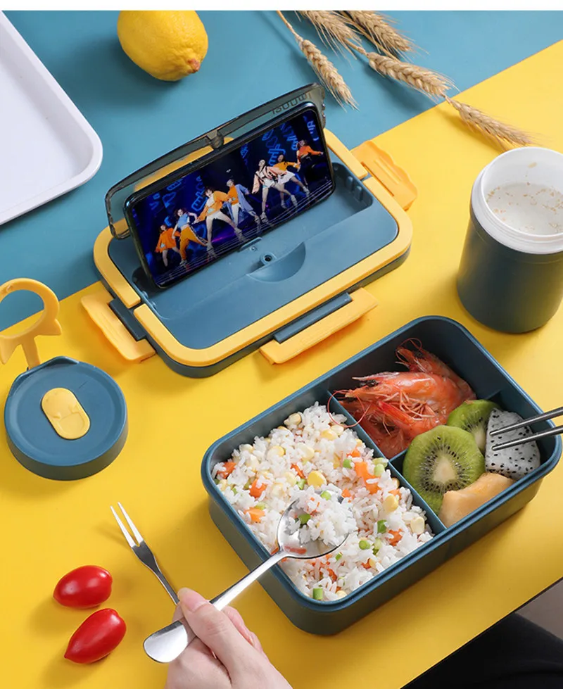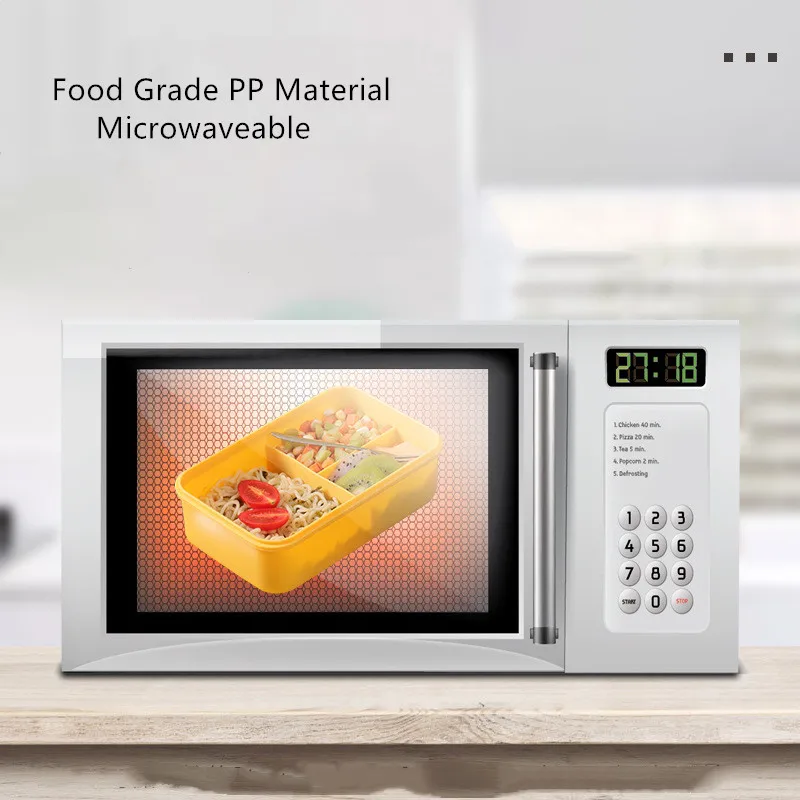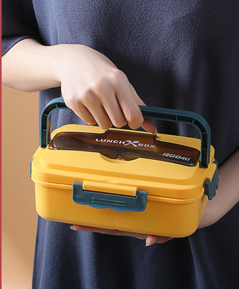 Портативный Ланч-бокс 1200 мл, 3 отделения, бэнто-бокс, набор студенческой столовой посуды, контейнер для хранения продуктов в микроволновой печи без бисфенола А
