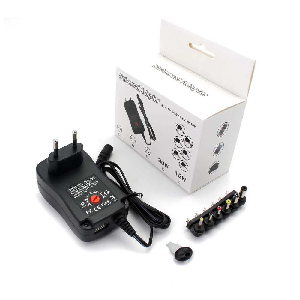 Блок питания, 12 В переменного тока, 24 В, Регулируемый адаптер, источник питания постоянного тока 3 В-12 в, 5 А, 3 в-24 в, 2 А, 3 А, 30 Вт, ЕС, США, с разъемом 5,5 мм * 2,5 мм (2,1 мм)
