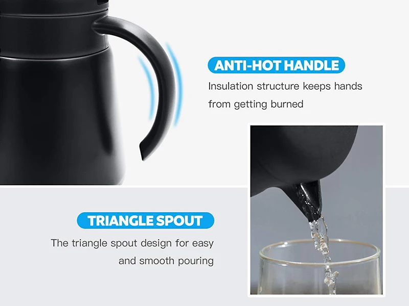 Изолированное Температурное удержание-в Leeseph thermal carafe используется двухслойная вакуумная изоляция, которая помогает удерживать тепло в течение 6 часов и холодную температуру до 12 часов.