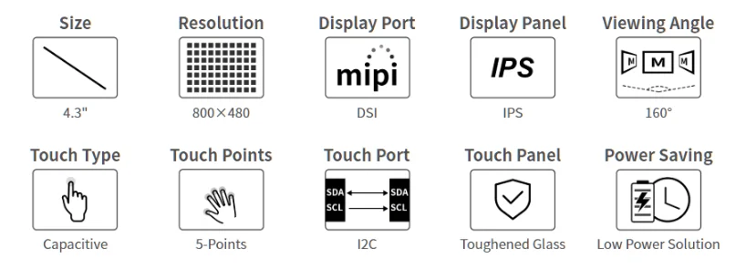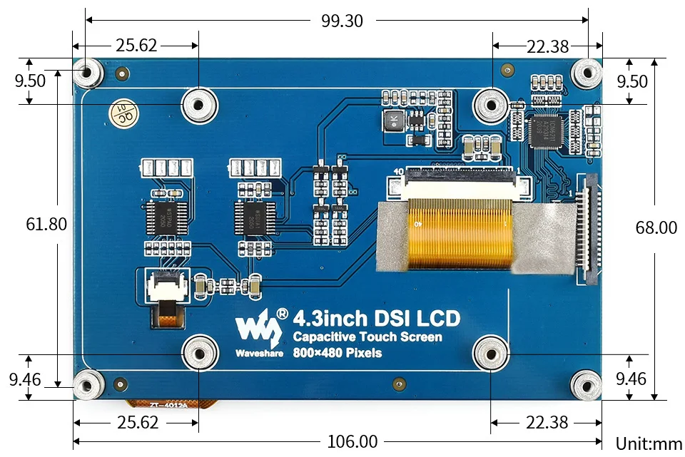 4,3 дюймов емкостный сенсорный экран Дисплей для Raspberry Pi, 800 × 480, IPS Широкий формат, MIPI DSI Интерфейс