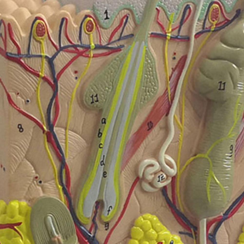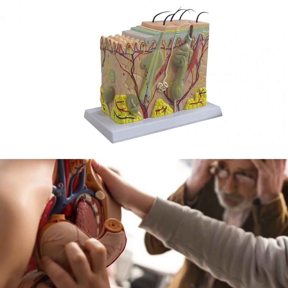 Это бутик-модель, которая имеет много предметов первой необходимости, и база может быть удалена. Кроме того, он показывает три слоя кожи, волосяные фолликулы, потовые желёвки, жировой ткани и так далее.