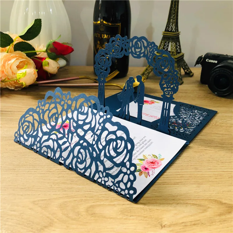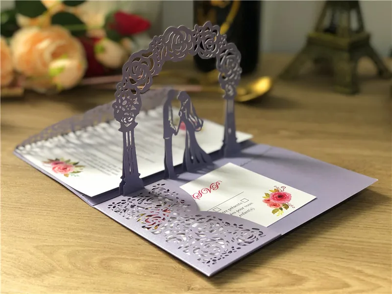 (20 шт./лот) 3D всплывающие розовый синий белый цвет приглашение на свадьбу открытка для кармана «сделай сам» поздравительные открытки жениха и невесты