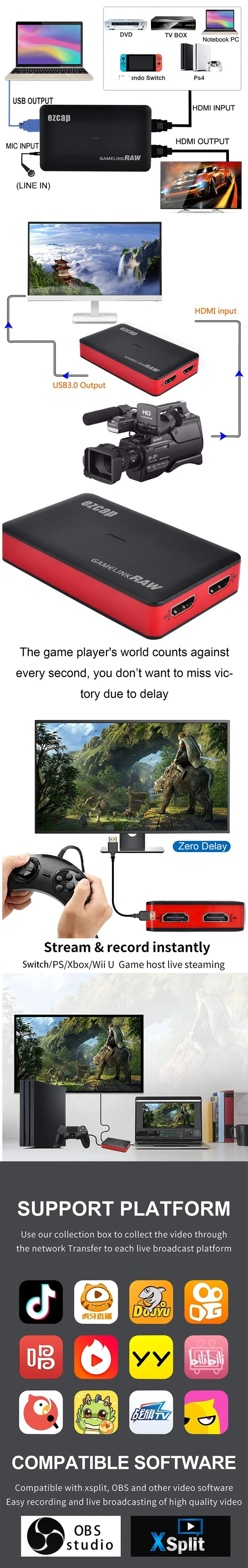 EzCAP321C USB3.0 UVC HDMI Video capture card with Mic in 4K 30 pass-through 1080P120 for win mac linux Android RGB real color