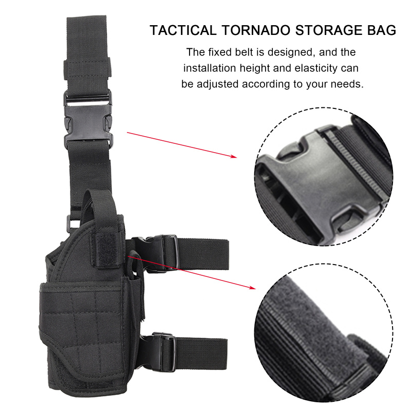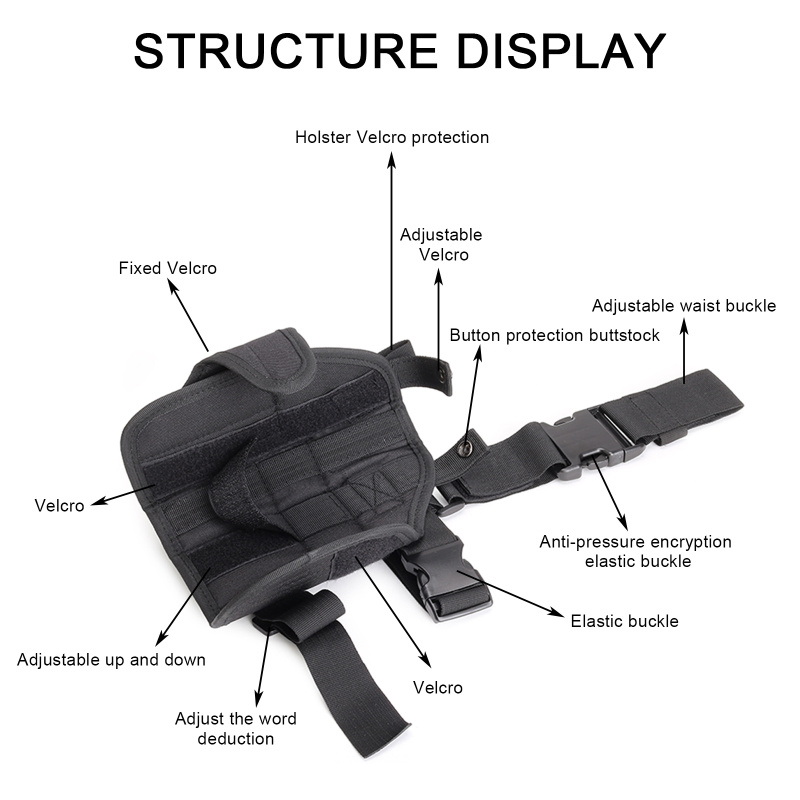 4. Подходит для: левая и правая ноги универсальны, используйте пряжку для ремня и два крепежных ремня для установки, подходящая окружность ноги 40 см. Специальный дизайн кобуры для ног подходит как glock17, glock19, 1911, desert eagle и т. Д.