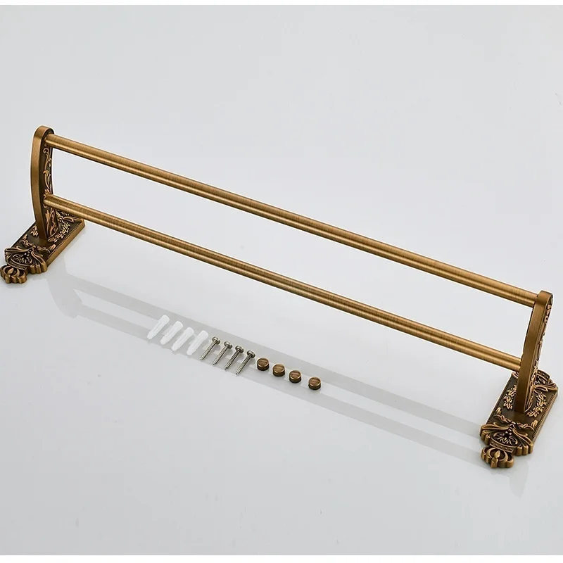 Держатель для полотенец из твердой латуни, античная бронза, банное полотенце, бар, аксессуары для ванной комнаты, античное двойное полотенце