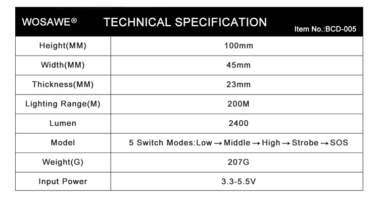 Название: WOSAWE супер яркий флэш-светильник USB Перезаряжаемый велосипедный светильник